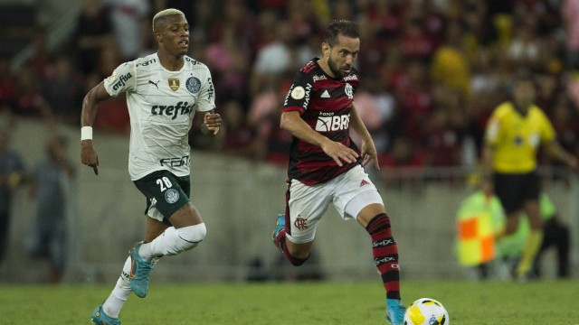 | Everton Ribeiro e Danilo em jogo entre Flamengo e Palmeiras. Foto: Guito Moreto / Agência O Globo |