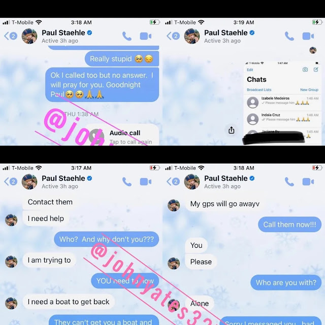 Segundo a mãe dele, Edna, informou na manhã da quinta-feira (31), ela recebeu algumas mensagens alarmantes dizendo que ele precisava de ajuda porque estava perdido. Ele também pediu um barco, dando-lhe informações de contato de algumas pessoas que poderiam ajudá-lo a sair desta situação.