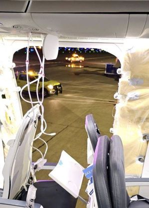 Postagens nas redes sociais mostraram uma janela e parte de uma parede lateral faltando no avião e máscaras de oxigênio instaladas.